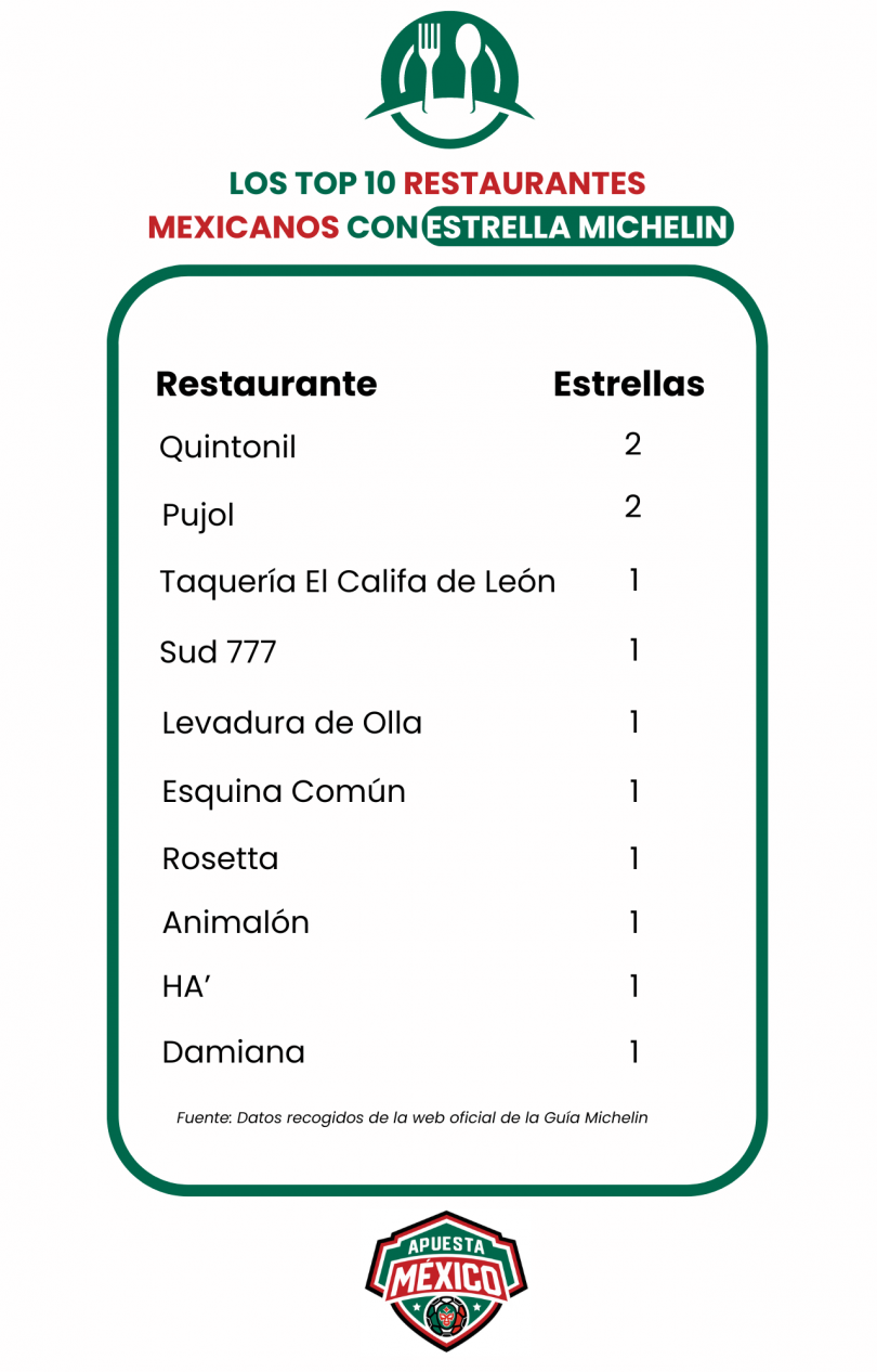 Con un total de 18 restaurantes con una estrella Michelin y 2 con dos estrellas, México se ha consolidado como el país latinoamericano con mayor presencia en la guía. La Ciudad de México, en particular, se ha convertido en un verdadero paraíso para los amantes de la alta cocina, con establecimientos que van desde la alta cocina mexicana hasta propuestas más vanguardistas.