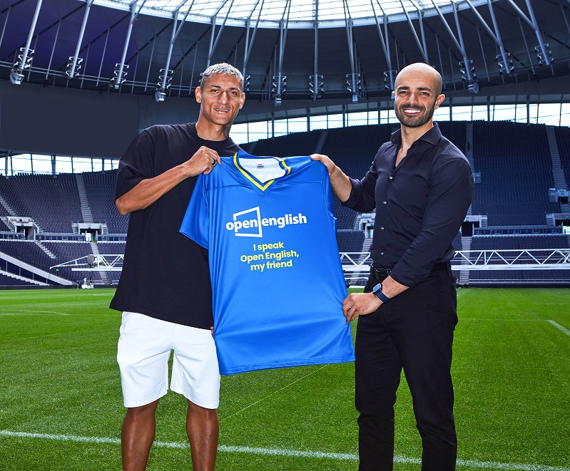 LATINOAMÉRICA (Septiembre 13 de 2023). Open English, líder en enseñanza de inglés en Latinoamérica y el mercado hispano de los Estados Unidos, ha escogido a Richarlison, el jugador número 9 del equipo nacional de Brasil y delantero para Tottenham Hotspurs, como embajador y nuevo estudiante. La colaboración llevará oportunidades de aprendizaje del idioma inglés a jóvenes desfavorecidos en Brasil.