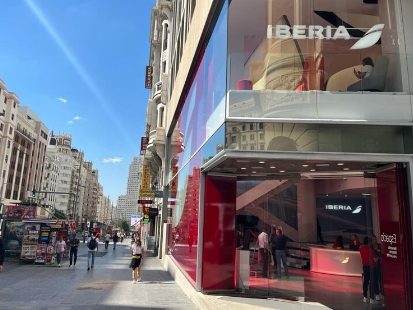 «Descubre el Espacio Iberia en Gran Vía 48, Madrid, abierto por tercer año consecutivo. Con 1100 metros cuadrados en dos plantas, ofrece experiencias únicas como realidad virtual y la recreación de sus primeros aviones. Disfruta del servicio a bordo del A350 y participa en catas de vino, cerveza y café». El programa Talento a Bordo ofrece encuentros y actividades. Una experiencia turística imprescindible en Madrid, disponible de 12h a 21h, hasta el 31 de julio.