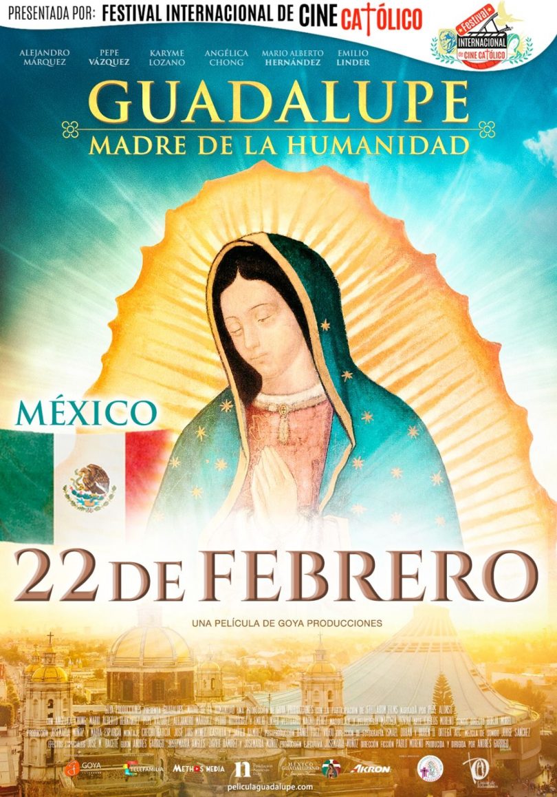 La esperada producción de Goya Producciones, ‘Guadalupe: Madre de la Humanidad’, tendrá su estreno mundial el próximo 22 de febrero en la cartelera de México. La película estará disponible en más de 200 salas de Cinemex en todo el territorio mexicano. Los boletos ya están disponibles en preventa en la web de la cadena. El film tiene programado su estreno en otros 18 países. La lista de cines se puede consultar en la página web: www.peliculaguadalupe.com.