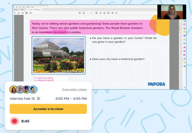Las clases en grupo de Papora buscan proporcionar a los estudiantes un entorno educativo interactivo y dinámico que optimice su progreso y confianza en el idioma.