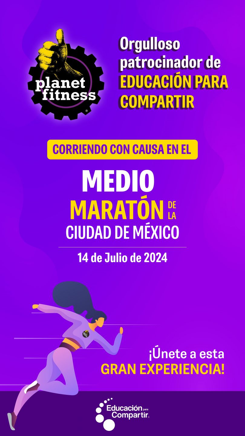 Como parte de su asociación con Educación para Compartir, Planet Fitness se suma a apoyar la iniciativa «Correr con Causa». Planet Fitness comparte la iniciativa de Educación para Compartir (Epc) y Corre con Causa respaldando a los corredores de EpC y Planet Fitness en el medio maratón y maratón de la CDMX, que se llevará a cabo el domingo 14 de julio y 25 de agosto 2024.
