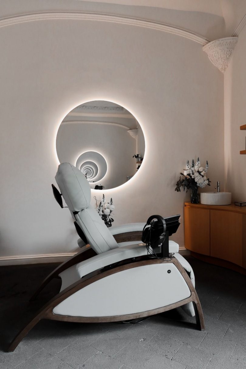 El sillón cuenta con seis programas de terapia beneficios para la mente y el cuerpo, dentro de sus categorías se implementan sonidos binaurales, ondas de sonido gamma y terapia de resonancia acústica enfocada en el nervio vago, que se vincula con el sistema de control parasimpático del corazón, los pulmones y el tracto digestivo. Las ondas de sonido de espectro completo que resuenan a través de transductores de alta fidelidad de cuatro canales colocados estratégicamente en el marco de la silla para lograr la reducción de estrés y sincronización armónica a nivel celular.